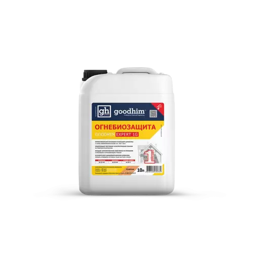 - ОГНЕБИОЗАЩИТА GOODHIM EXPERT 1G выпускается в виде жидкости, с усиленным антисептическим действием и является уже готовым раствором для применения.