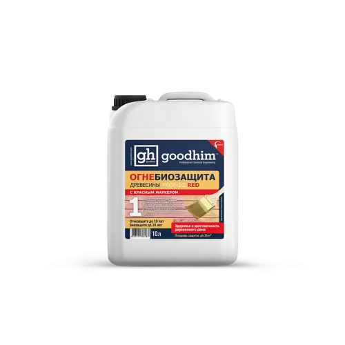 ОГНЕБИОЗАЩИТА GOODHIM PROF 1 G RED - профессиональная огнезащита и биозащита древесины с усиленным антисептическим и огнезащитным действием I группы (высшая) согласно ГОСТ Р 53292-2009.