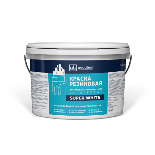 КРАСКА РЕЗИНОВАЯ GOODHIM предназначена для создания эластичного, водостойкого и устойчивого к мытью декоративно-защитного покрытия, которое может эксплуатироваться во влажных помещениях, на фасадах, крышах и цоколях зданий, водосточных трубах, металлических поверхностях, оцинкованном металле, черепице, шифере, оштукатуренных, бетонных и гипсовых поверхностях и т. д.