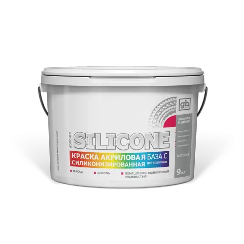 - КРАСКА АКРИЛОВАЯ СИЛИКОНИЗИРОВАННАЯ GOODHIM SILICONE выпускается в виде готового продукта, представляет собой однородную массу и не требует разбавления.